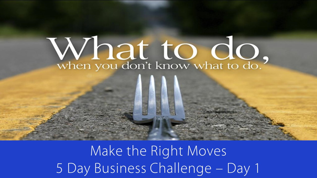 Awareness of growth factors, or lack thereof, is an amazingly common mistake for business owners. Most business owners focus on today’s results I.E: sales and prospecting and service delivery and this results in more of the same results. If you want different results you need to focus on different categories. Focus on and understand your strengths, weakness, opportunities, risks and competitive advantages. These categories leverage change to achieve different and better results. For day two of the five day business challenge we’ve got five key questions and a process for creating your starting point for making the right move(s) for your business.